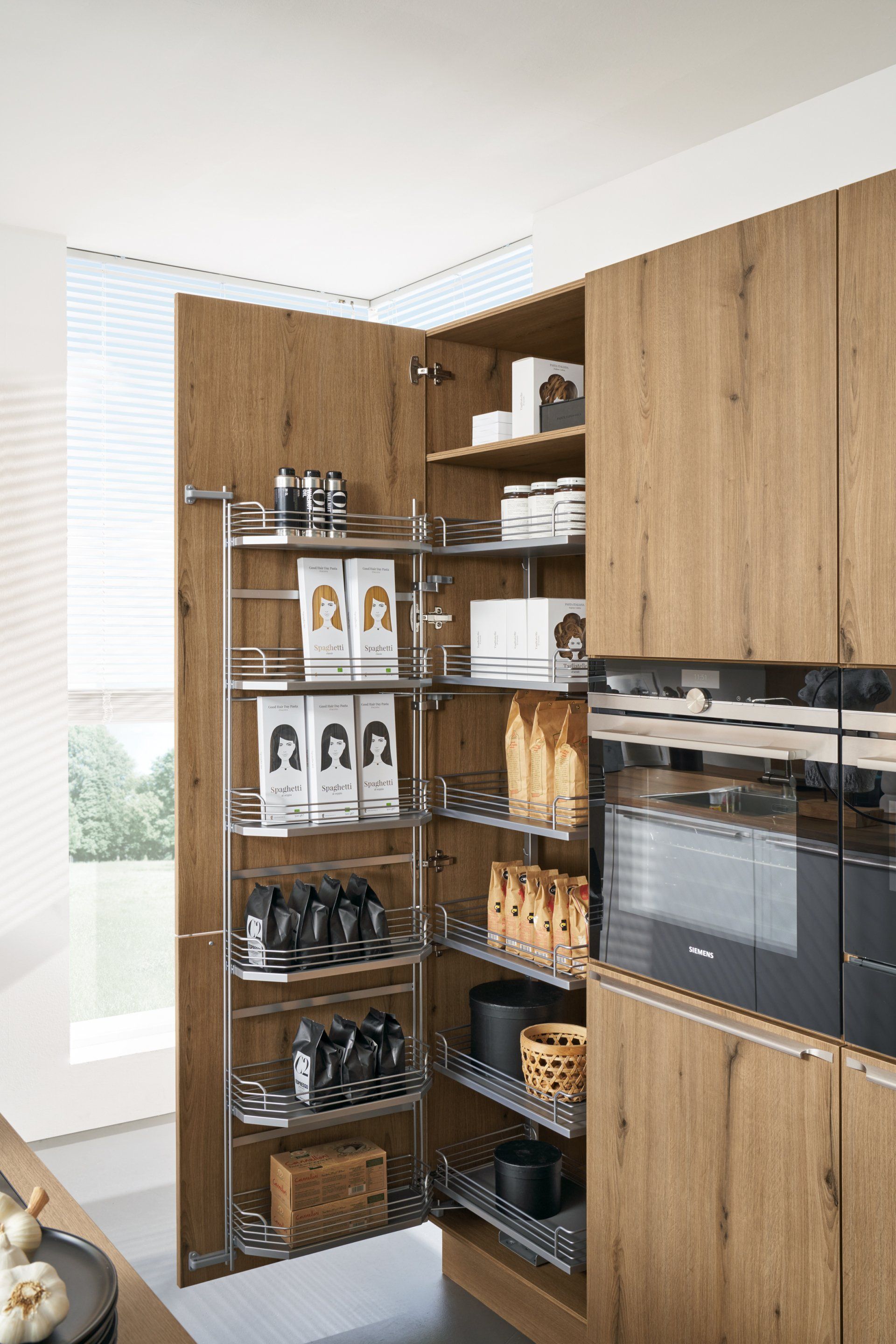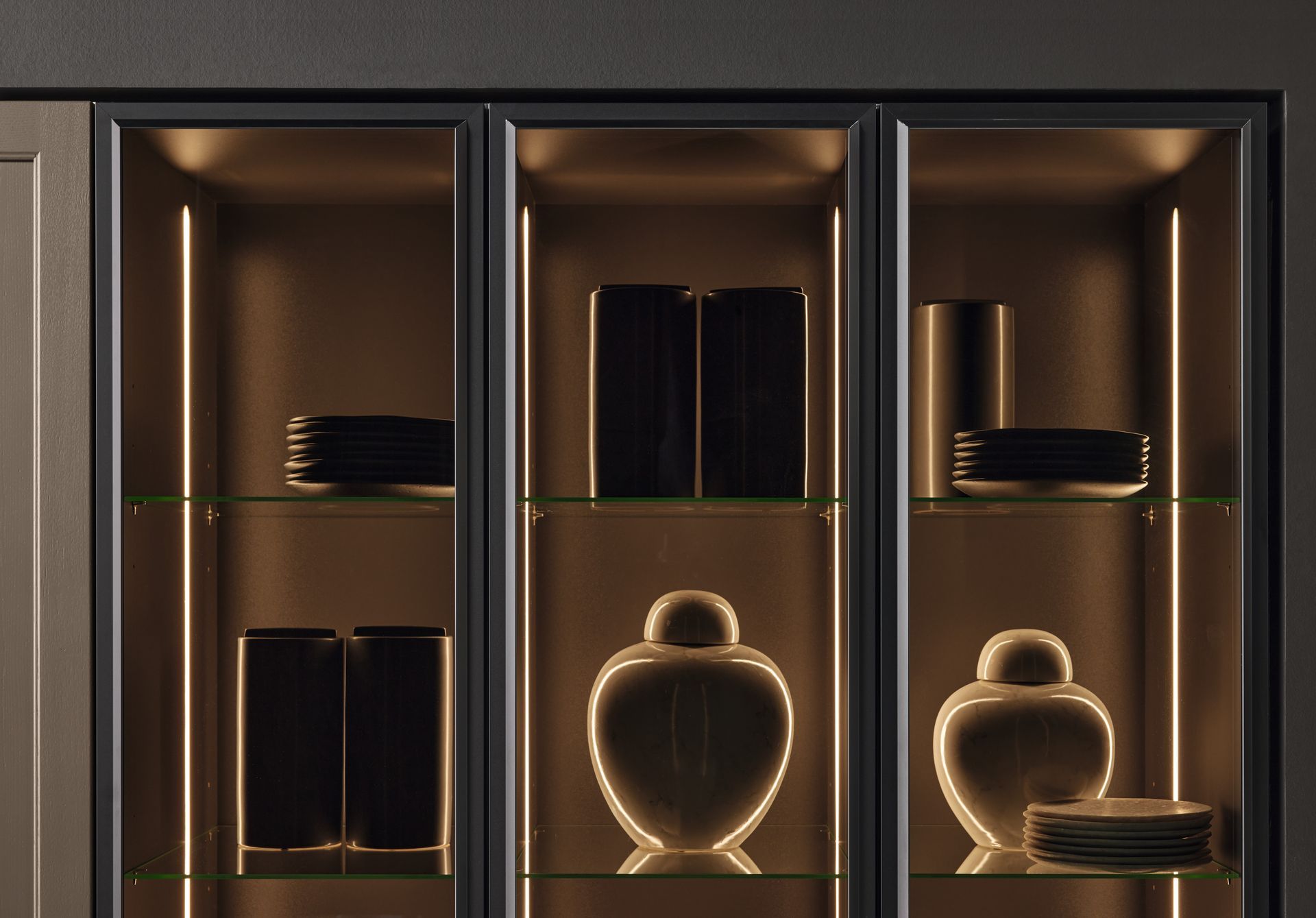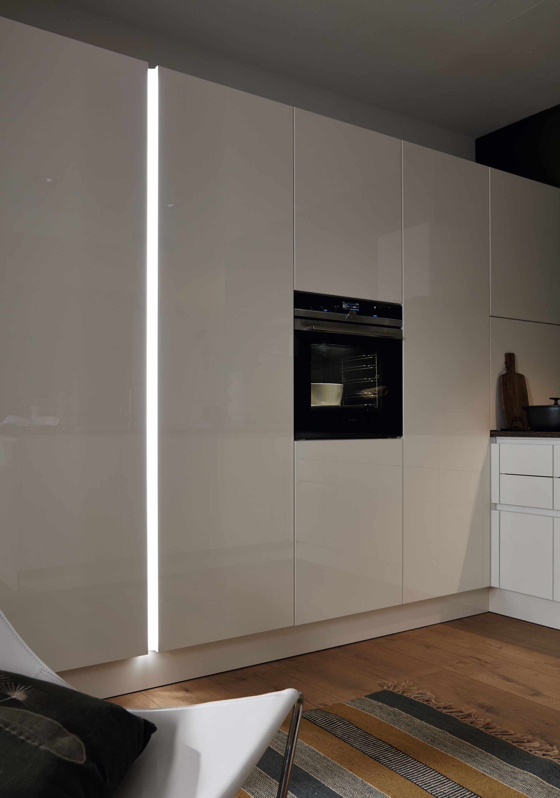 We have cabinet fronts made of real wood, genuine lacquer in soft-matte or high-gloss, concrete, metal, glass, or fingerprint-resistant laminate. With over 180 color combinations, customization is endless. Functionality and ergonomic designs mean no more stooping to find what you need. Interior-lit cabinets, thoughtful placement of appliances, and meticulous organization make spaces not only easy on the eye, but also your body!